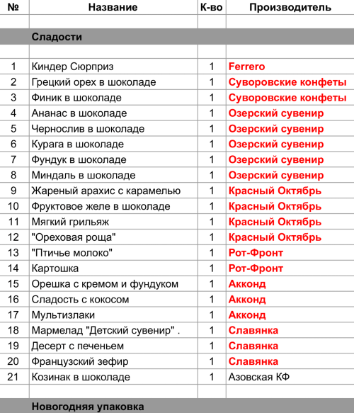 1. Проверить, можно ли внести изменения в состав подарка. Если нет, то скорее всего наборы были собраны еще летом из конфет, произведенных еще раньше